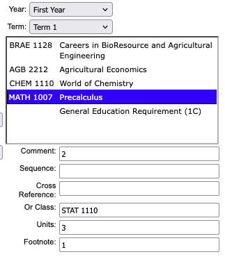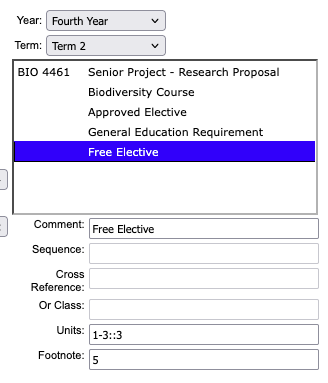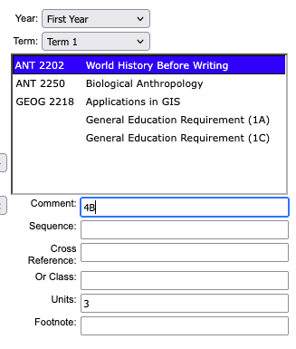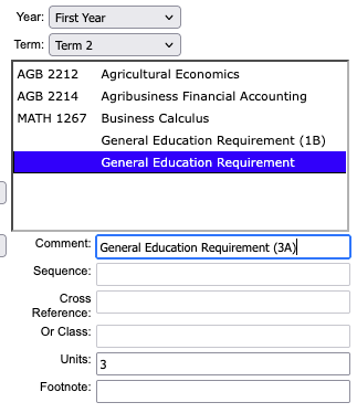 For example if a department is wanting to specify the type of General Education Requirement that a student should be taking in a particular term, then the comment entry can be updated to include that specified GE.