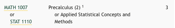 - Or Class = to reflect alternative course options to meet the requirement